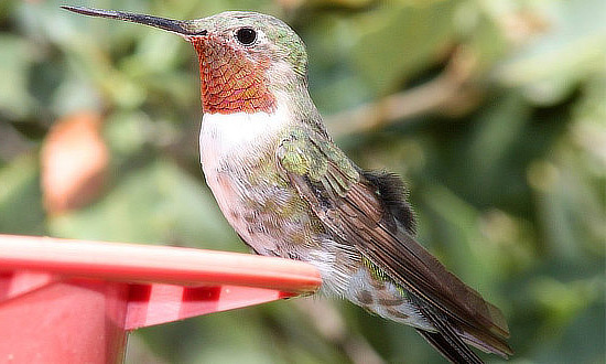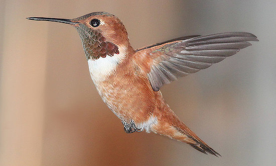 - Rufous: These migrate through the western half of Colorado. Males have distinctive bright orange on their backs and bellies with iridescent red throat feathers. Females have greenish backs and faint rusty patches on flanks.